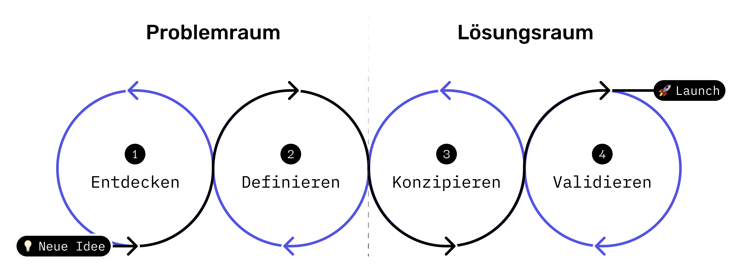 Unsere Methodik beruht auf einem agilen Ansatz, der iterative Prozesse ermöglicht und Entscheidungen erst dann trifft, wenn sie valide geprüft wurden. Dafür greifen wir auf einen umfangreichen Methodenkoffer zurück, den wir über Jahre hinweg kontinuierlich erweitert und flexibel an unterschiedliche Anforderungen angepasst haben